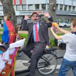 Natürlich haben wir es uns auch nicht nehmen lassen am Vormittag bei der Demo mitzulaufen. Mit Lastenrad, Box und Stickerrollen ausgestattet ging es die Demoroute entlang um den Wall. Leider meinte ein Anwohnender den sogenannten Hitlergruß zeigen zu müssen, dieser bekam dann anschließend Besuch von der Polizei. Ein freundlicher Service Eurer PARTEI 😉 T-online berichtete.