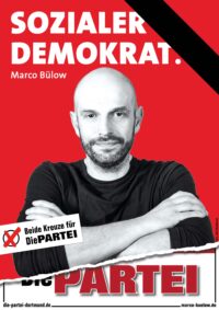Für Die PARTEI war Marco Bülow ein Beweis, dass Satire und Ernst kein Widerspruch sind. Und dass man kämpfen kann, ohne sich zu verkaufen. Im Wahlkampf 2021 standen wir gemeinsam auf der Straße – mit unterschiedlichen Biografien, aber derselben Überzeugung: Demokratie ist kein Karrieremodell.